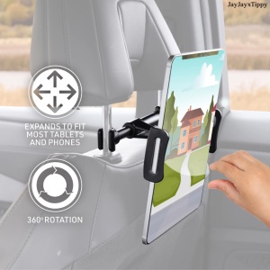 - 360 DEGREE ROTATABLE: Rotatable and adjustable car tablet holder can be tilt for horizontal and vertical views. Provides you ultra comfortable hands-free viewing angle on back seat on the ride and in travel.