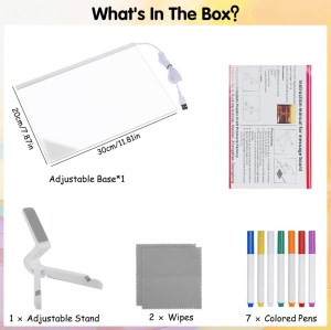 LED Note Board with Colors is made of high-quality acrylic material, strong and durable. Acrylic Dry Erase Board is powered by USB. When connected to the power supply, it will emit an even light, ensuring that your information and design will shine in any environment.
