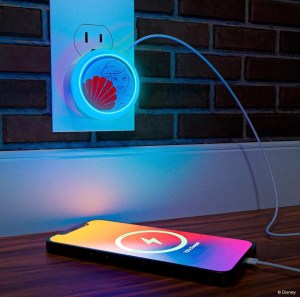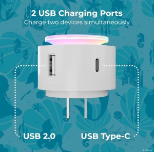Increase your decor with this Disney Princesses Ariel Night Light. Officially licensed, it cycles through six dazzling LED settings. In addition, it features 1 USB-A and 1 Type-C charging port for convenience. A must-have for the Little Mermaid fans and Disney enthusiasts. Enjoy premium quality with this Disney product!